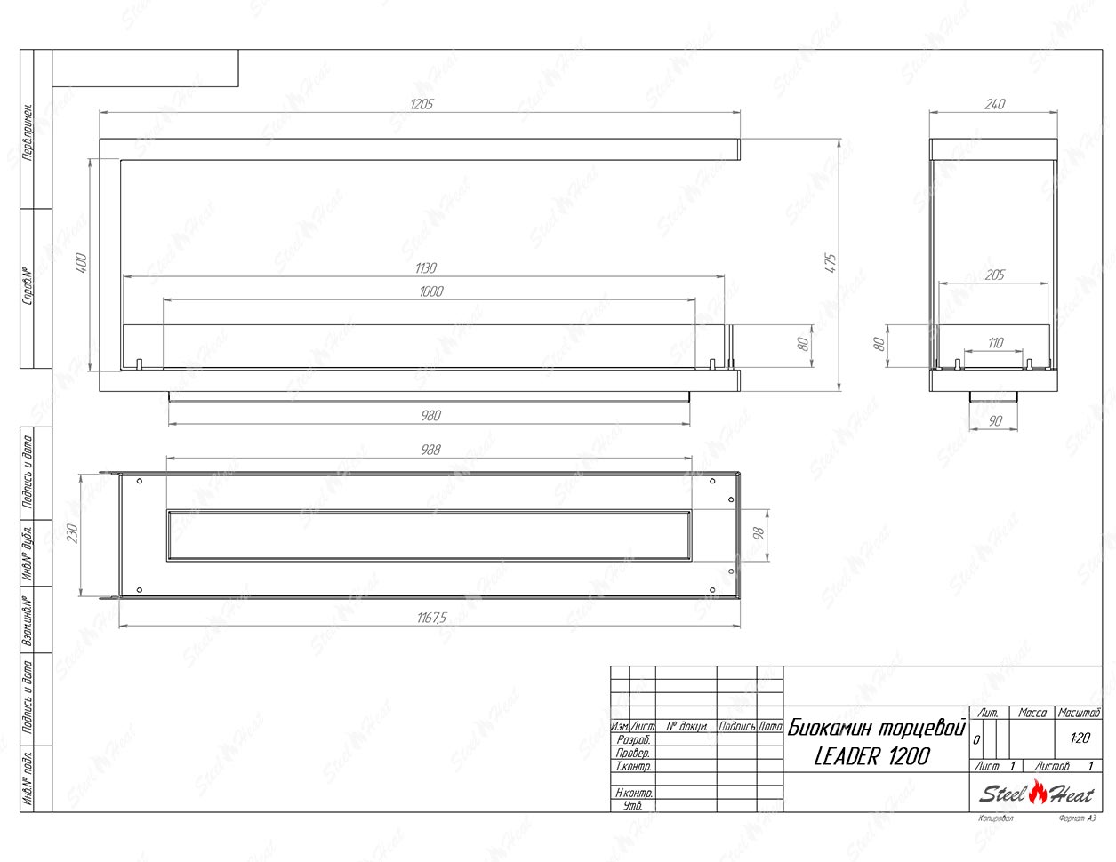Встраиваемый Биокамин торцевой SteelHeat Leader 1200 предназначен для встраивания в глухие ниши из гипсокартона, кирпича, пеноблоков, бетона.