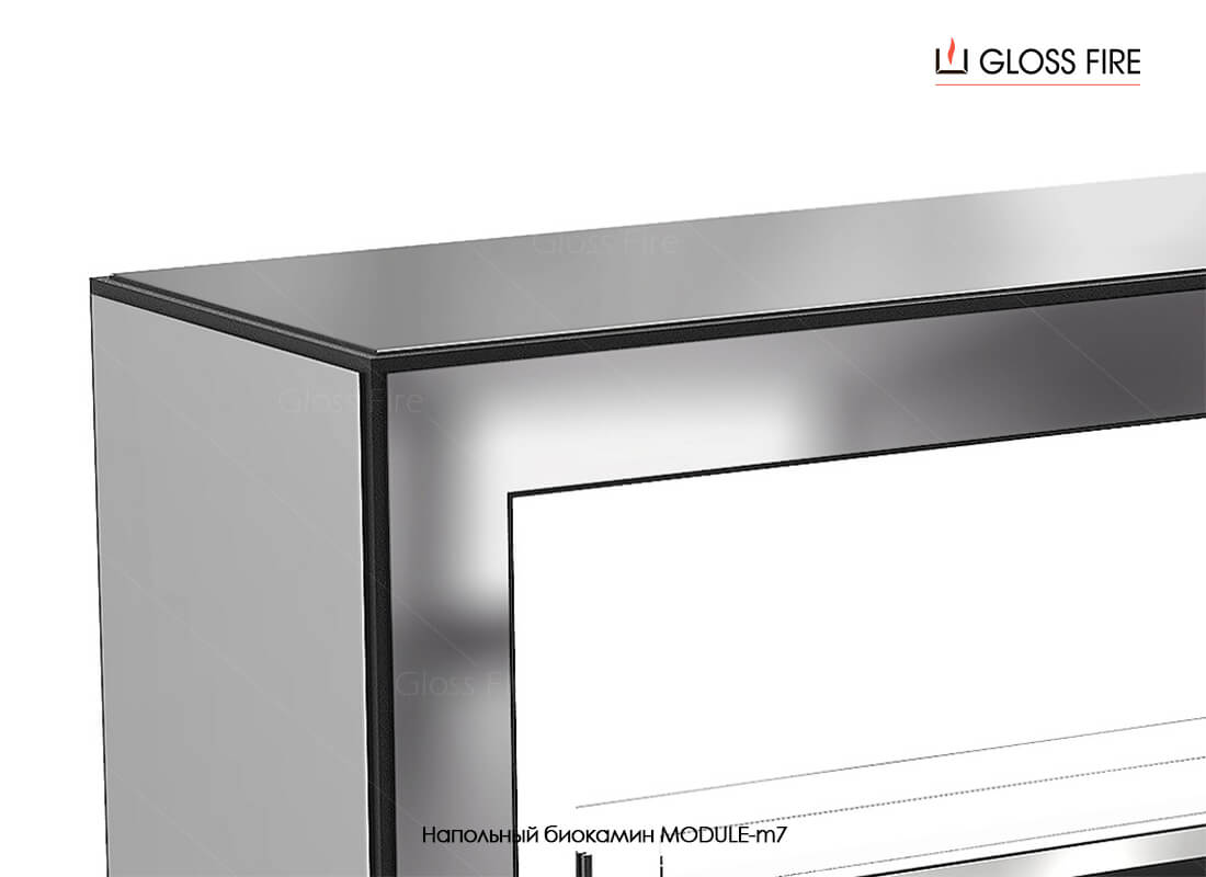 Напольный сквозной биокамин Module-m7 выполнен из высококачественной стали. Наружная часть корпуса полированная нержавеющая сталь. Внутренняя часть корпуса и углы снаружи окрашены термостойкой краской. Камин комплектуется топливным блоком, который воспроизводит насыщенное жёлтое пламя.